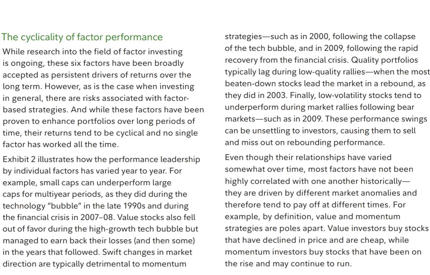 Edito: minuto 1:40 del vídeo “and another key point is that while these Factor approaches have worked in the past, it doesn’t necessarily mean that they are going to work in the future”