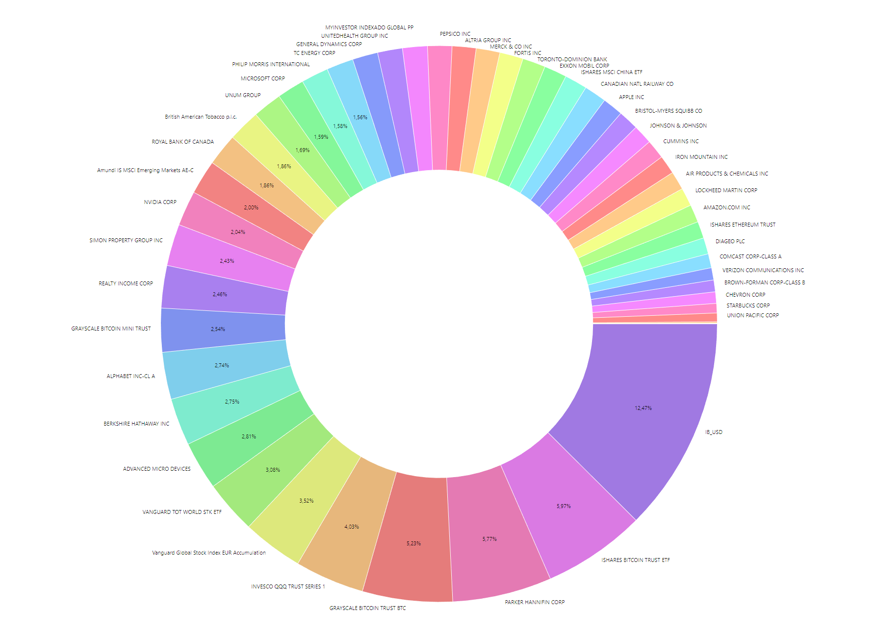 Estos últimos meses he hecho algunas compras en los etf de BTC con las caídas, he empezado posición en DGE, el MCHI, y he ampliado algunas de las posiciones que ya tenia en cartera.