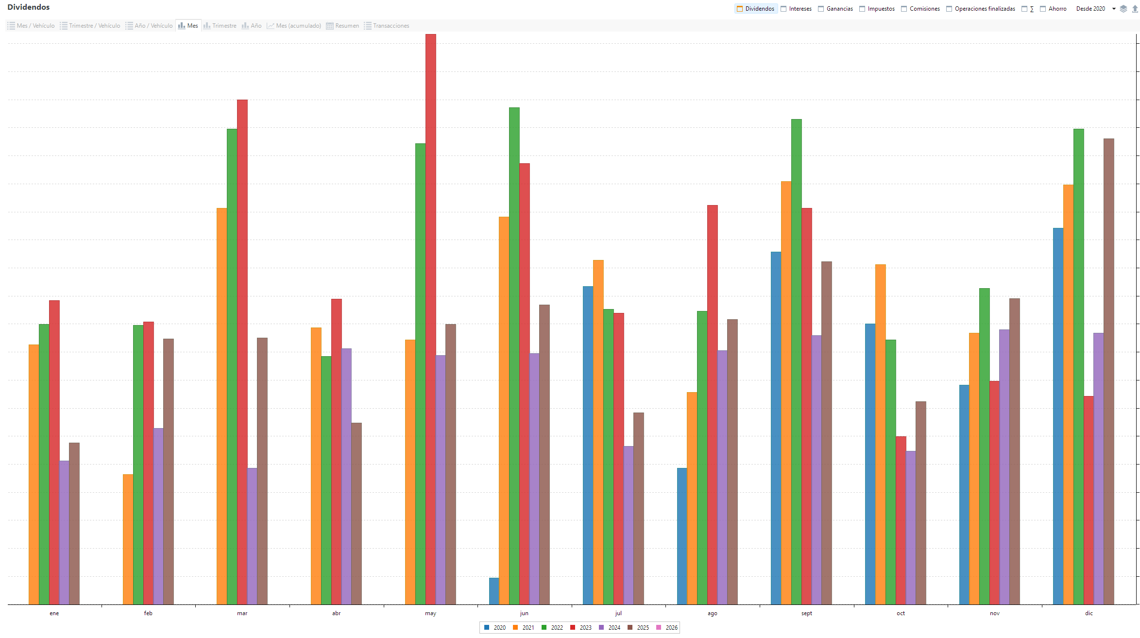 Parece que los dividendos se han estabilizado un poco, cobrando todos los meses lo mismo casi.
