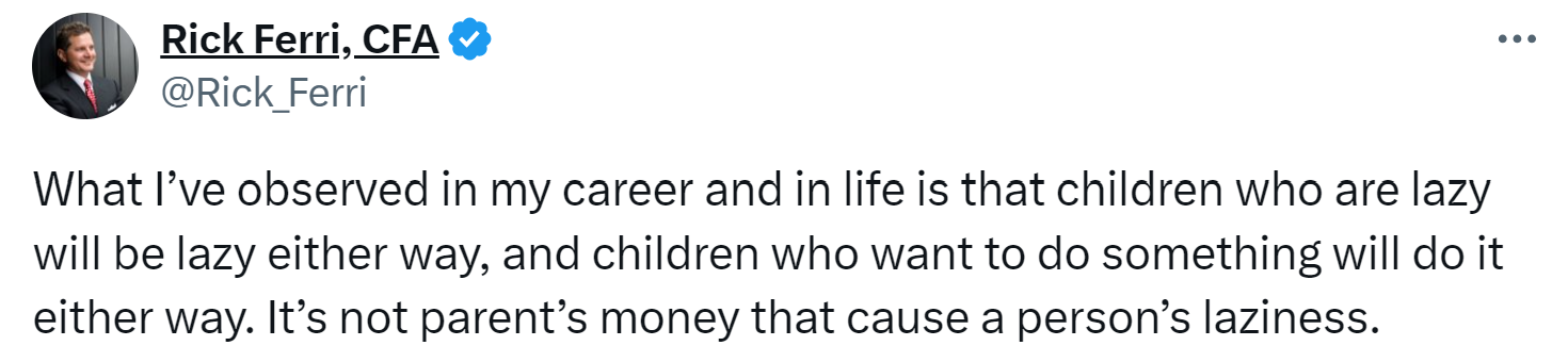 Desde mi punto de vista el error es criar a los hijos en un ambiente de abundancia y facilidad. Eso no significa que no se pueda ir creando una cartera “para ellos”, que no “de ellos”, y hacer uso de ella como se estime oportuno.