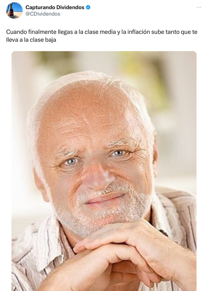 Los Gobiernos me da que están bien tranquilos con el tema inflación @ciguatanejo, realmente para como van de deuda y demás, no les va mal del todo que la inflación esté alta por un tiempo. Por otra parte, aunque la gente comente eso de “está subiendo todo” y tal, no te van a incendiar las calles por la inflación, como si lo harían si el salario nominal de un trabajador baja de 2k a 1.9k.