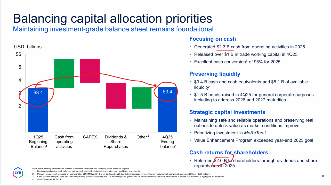 Suelo separar mi cartera en cuatro niveles: dos niveles para las que no pienso vender a menos que cambien su modelo de negocio (el primer nivel las que más me gustan y soy poco exigente con el precio y el segundo nivel las que no considero súper pata negra y soy más exigente). Luego tengo dos niveles para las que están bien y si me dan una gran alegría vendo y las que cuando pueda vendo aunque no sean necesariamente malas (aquí llevo ahora Alantra, Faes, Iberpapel y UPS). Recientemente metí ahí a LYB. Por ser súper cíclica y porque, como dijeron arriba, en el pasado ya había quebrado (crisis del 2008). Y eso me dejaba intranquilo.