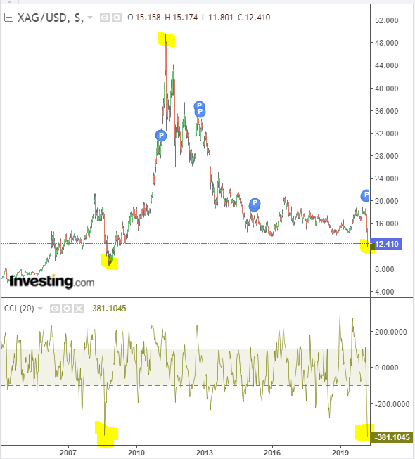 Yo la única recesión gorda de verdad que recuerdo es la de 2008. Y el aspecto de la plata entonces y ahora son clavados. Estuve viendo la del 2000 y también hizo algo parecido. Pero solo parecido, no tan calcado como están siendo el movimiento de 2008 al de ahora. También esa crisis del 2000 fue mucho mas lenta y más sectorial.