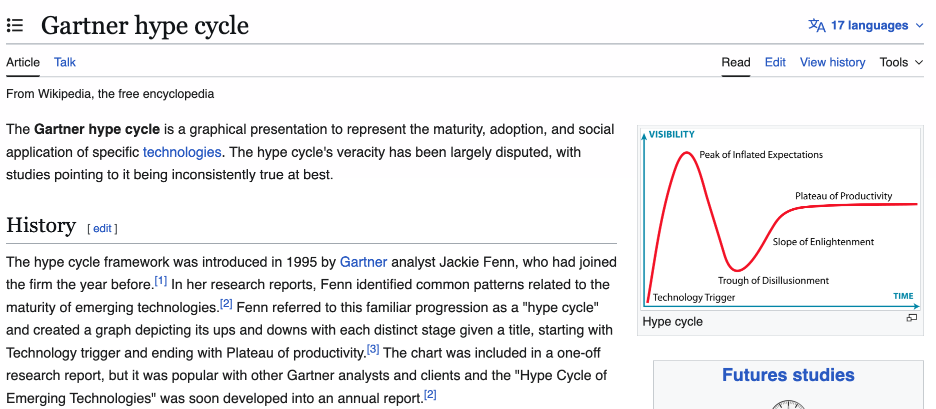 Jackie Fenn, analista de Gartner, ideó el concepto en 1995 para describir gráficamente la madurez y adopción de tecnologías.