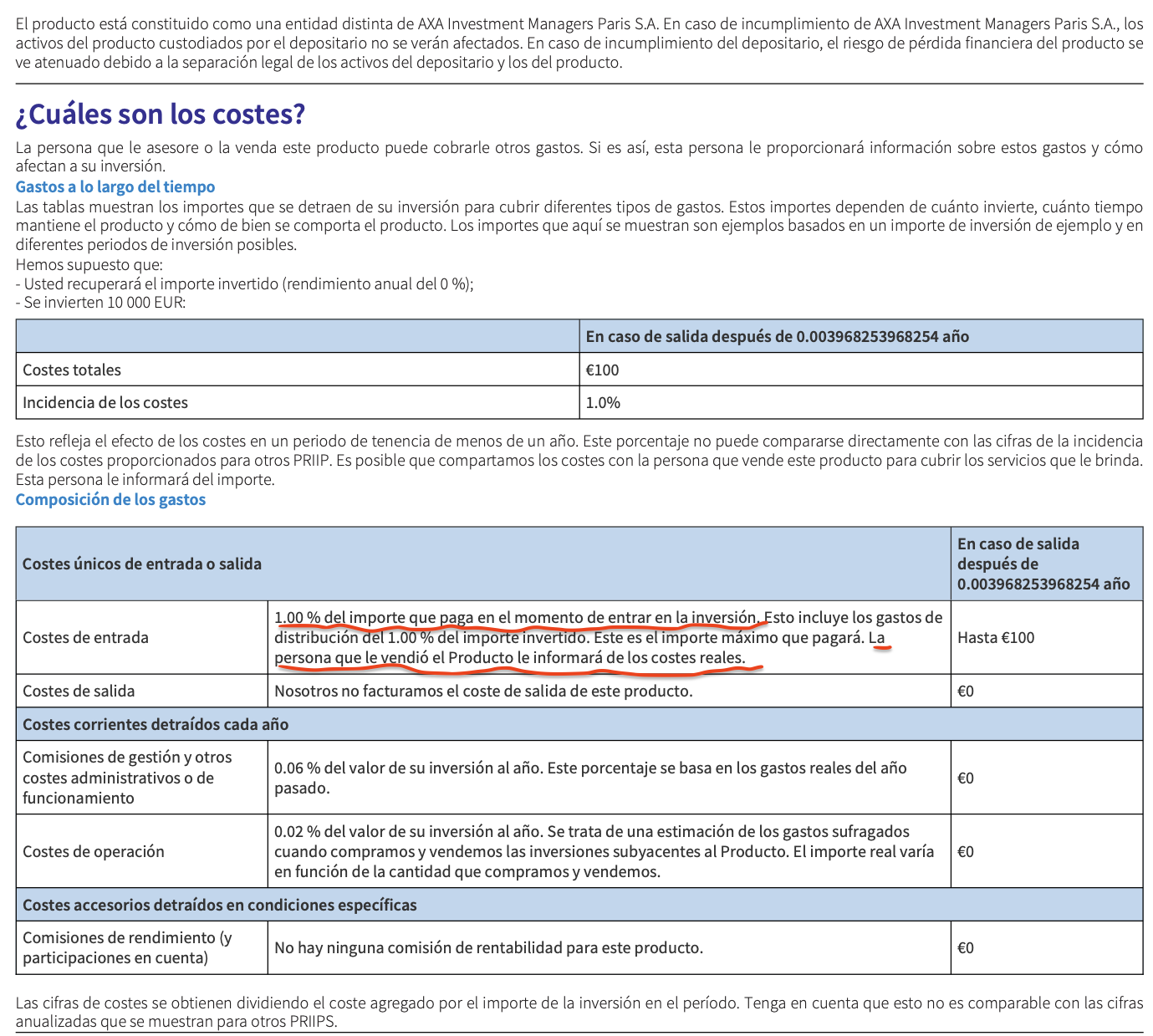 Hola, en la ficha del fondo o documento de datos fundamentales (KID) indican ese coste que va para AXA. Es la comisión de entrada, y es el máximo que cobran.