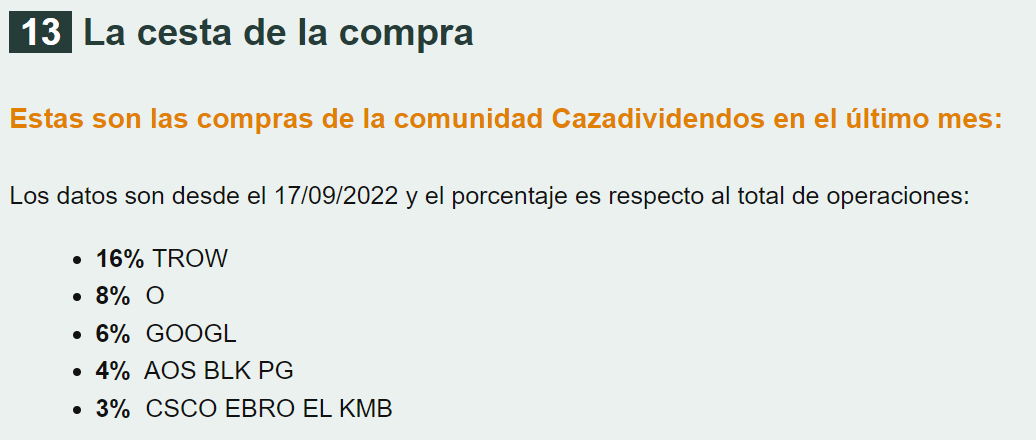 La cesta de la compra de la comunidad.