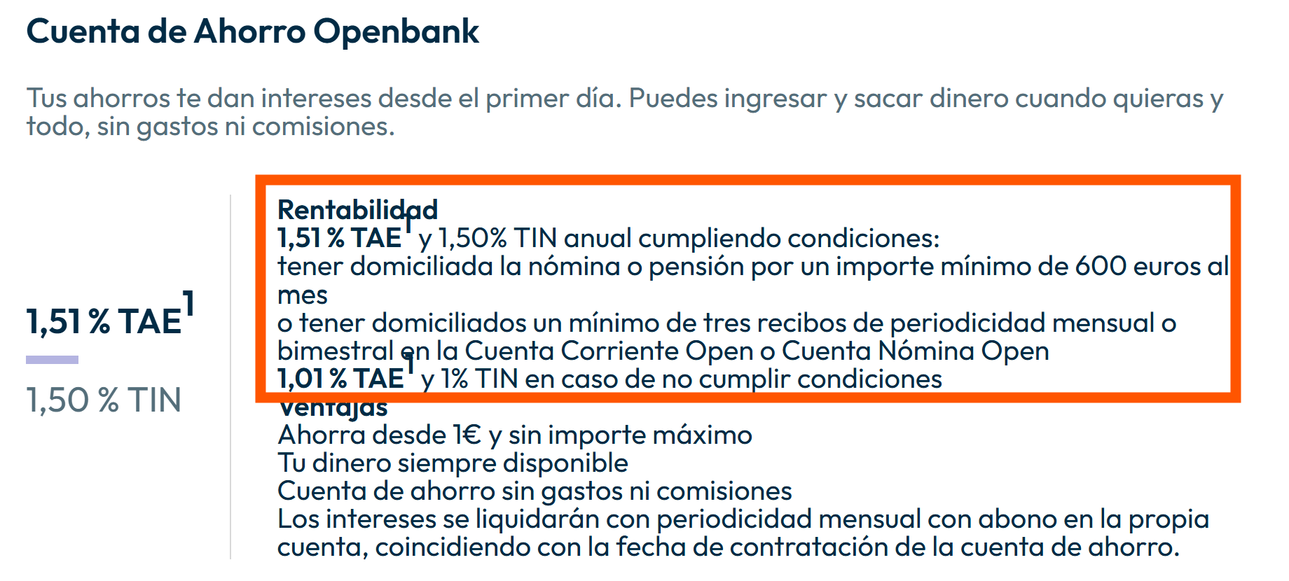 Nueva cuenta de ahorro al 1’5%, buena para el dinerillo parado.