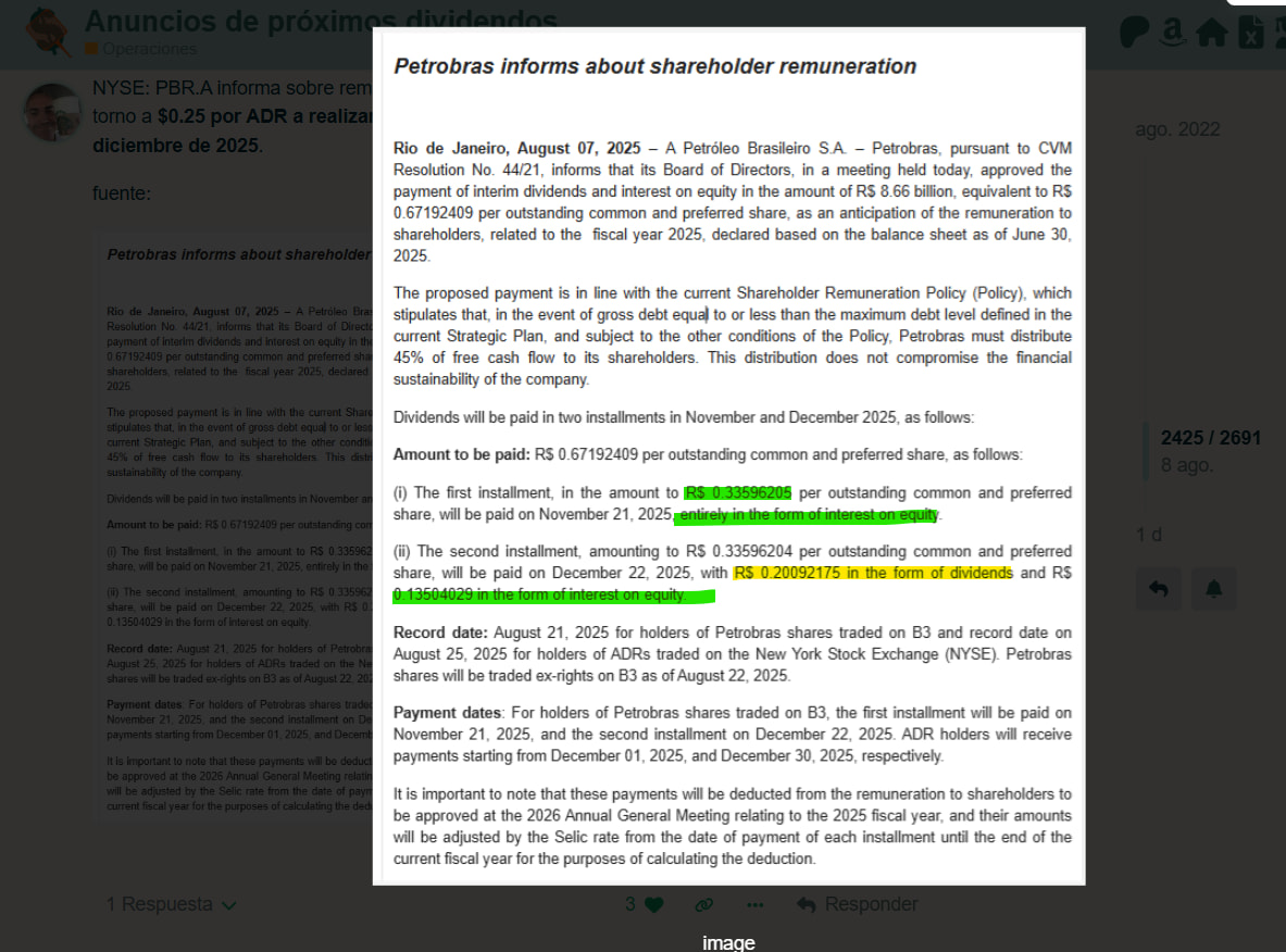 hola @furacu Petrobras hace pagos de dos tipos