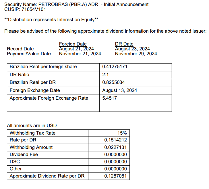 Interest on equity (initial, aún no definitivo)
