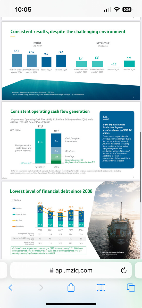 Basado en el plan estratégico y los resultados del cuarto trimestre, aquí hay un análisis de las preguntas relevantes de la llamada de ganancias y las preocupaciones de los analistas, junto con las respuestas de Petrobras: Preguntas relevantes de la llamada y las preocupaciones de los analistas Las preguntas de los analistas durante la llamada se centraron principalmente en buscar claridad y tranquilidad en áreas estratégicas clave, particularmente a la luz de la pérdida neta en el cuarto trimestre, a pesar de que se atribuyó a factores contables. Aquí hay un desglose de las principales preocupaciones y las preguntas que las reflejan: 1 Capex y eficiencia de inversión: ◦ Preocupación del analista: El aumento del Capex en 2024, aunque se explicó como una anticipación, planteó preguntas sobre la disciplina del capital y la eficiencia de estas inversiones aceleradas. Los analistas querían entender si este mayor gasto realmente se estaba traduciendo en una creación de valor más rápida y si era una tendencia sostenible. ◦ Pregunta relevante (Luiz): Luiz preguntó directamente sobre la “mayor adherencia del Capex planificado frente al ejecutado en 25-29”, queriendo saber si el aumento del Capex estaba llevando a un “PVN positivo en el proyecto”. También cuestionó si la anticipación estaba llevando a una aceleración de la “curva de producción” o a una “reducción del futuro Capex”. 2 Exploración del margen ecuatorial y preocupaciones ambientales: ◦ Preocupación del analista: El margen ecuatorial es un área clave de crecimiento, pero también conlleva riesgos ambientales y regulatorios. Los analistas buscaron tranquilidad sobre el enfoque de Petrobras para estos desafíos y el cronograma para el progreso. ◦ Pregunta relevante (Jorge Gabrich): Si bien el audio de Jorge no estaba claro, el moderador indicó que su pregunta era sobre el “Margen ecuatorial”. Este es un tema muy relevante dadas las sensibilidades ambientales y los obstáculos de las licencias. 3 Perspectiva de producción y mantenimiento: ◦ Preocupación de los analistas: A pesar de los objetivos de producción positivos, los analistas fueron conscientes de las posibles interrupciones del mantenimiento, especialmente con una base de activos envejecida. Querían entender el impacto de los cierres de mantenimiento en las previsiones de producción y cómo Petrobras estaba gestionando esto. ◦ Pregunta relevante (Bruno Montanari): Bruno preguntó sobre los “impactos de esos cierres de mantenimiento” en los resultados de 2024 y qué esperar para 2025. También preguntó sobre los ajustes a la estrategia de Petrobras para “involucrar un poco más a sus inversores y garantizar la integridad de su entrega”. 4 Panorama competitivo y estrategia: ◦ Preocupación de los analistas: En un panorama energético cambiante, los analistas estaban interesados en las estrategias de Petrobras para mantener la competitividad, particularmente frente al aumento de los costos y la transición energética. ◦ Pregunta relevante (Monique de BBA): La pregunta de Monique, aunque abreviada, era sobre “insistir un poco en el tema de Capex”, lo que sugiere una inmersión más profunda en la justificación detrás de las decisiones de inversión y su impacto en el posicionamiento futuro de la empresa. Respuestas y garantías de Petrobras El equipo de gestión de Petrobras abordó estas preocupaciones enfatizando los siguientes puntos en sus respuestas: • La anticipación de Capex es valor-acretivo (pregunta de Luiz): ◦ Respuesta: Petrobras aclaró que el aumento del Capex no era un costo adicional, sino una aceleración estratégica de las inversiones planificadas, particularmente en el campo de Buzios de alto rendimiento. Este avance tenía la intención de reducir el “desajuste” entre el progreso físico y financiero y, en última instancia, aumentar el VAN del proyecto al llevar la producción en línea antes. ◦ Tranquilidad: Esto aborda la preocupación por la disciplina del capital al enmarcar el mayor Capex como un movimiento estratégico para mejorar el valor, no gastar en exceso. • Margen Ecuatorial - Exploración Responsable (Pregunta De Jorge Gabrich): ◦ Respuesta (Clarisse y Silvia): Petrobras destacó su “preparación para perforar” en el margen ecuatorial, enfatizando las extensas preparaciones y los recursos asignados a la protección del medio ambiente. Hicieron hincapié en el plan de respuesta de emergencia “sin precedentes”, que incluye un centro de rehabilitación de fauna y equipos especializados (como pilas de tapado utilizadas en el Golfo de México). También enfatizaron la garantía geológica de que las corrientes oceánicas correrían paralelas a la costa, mitigando los riesgos de derrames. ◦ Tranquilidad: Esto tenía como objetivo aliviar las preocupaciones ambientales y demostrar la preparación para la exploración responsable en esta región sensible. • Perspectiva de producción - Mantenimiento gestionado (Pregunta de Bruno Montanari): ◦ Respuesta (Renata): Petrobras reconoció el impacto de los cierres de mantenimiento en 2024, incluidos los eventos programados y no programados (como la huelga de Ibama). Sin embargo, enfatizaron que su orientación de producción para 2025 ya tiene en cuenta estos eventos de mantenimiento planificados. También están tomando medidas para mitigar futuras interrupciones contratando unidades marítimas de mantenimiento y centrándose en la programación eficiente. ◦ Tranquilidad: Esto abordó las preocupaciones sobre la fiabilidad de la producción al mostrar que el mantenimiento se tiene en cuenta en sus pronósticos y que están gestionando activamente estos eventos. • Competitividad y ajustes estratégicos (Pregunta de Monique): ◦ Respuesta (Renata y Fernando): Petrobras abordó el aumento de los costos y las presiones competitivas en la industria. Destacaron los esfuerzos para mejorar la competit
