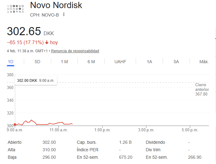 Las acciones de Novo Nordisk caen un 11% después de que la compañía pronosticara una disminución de las ventas este año