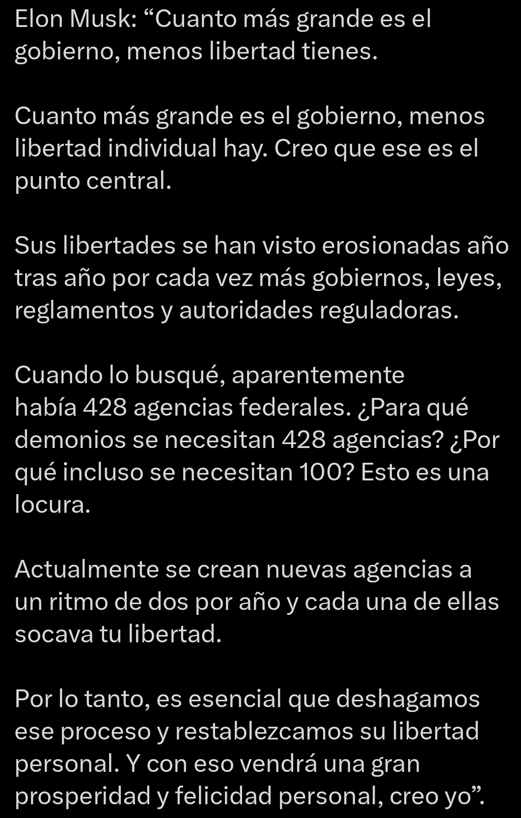 Elon: Agencias gubernamentales ¡¡¡FUERA!!!