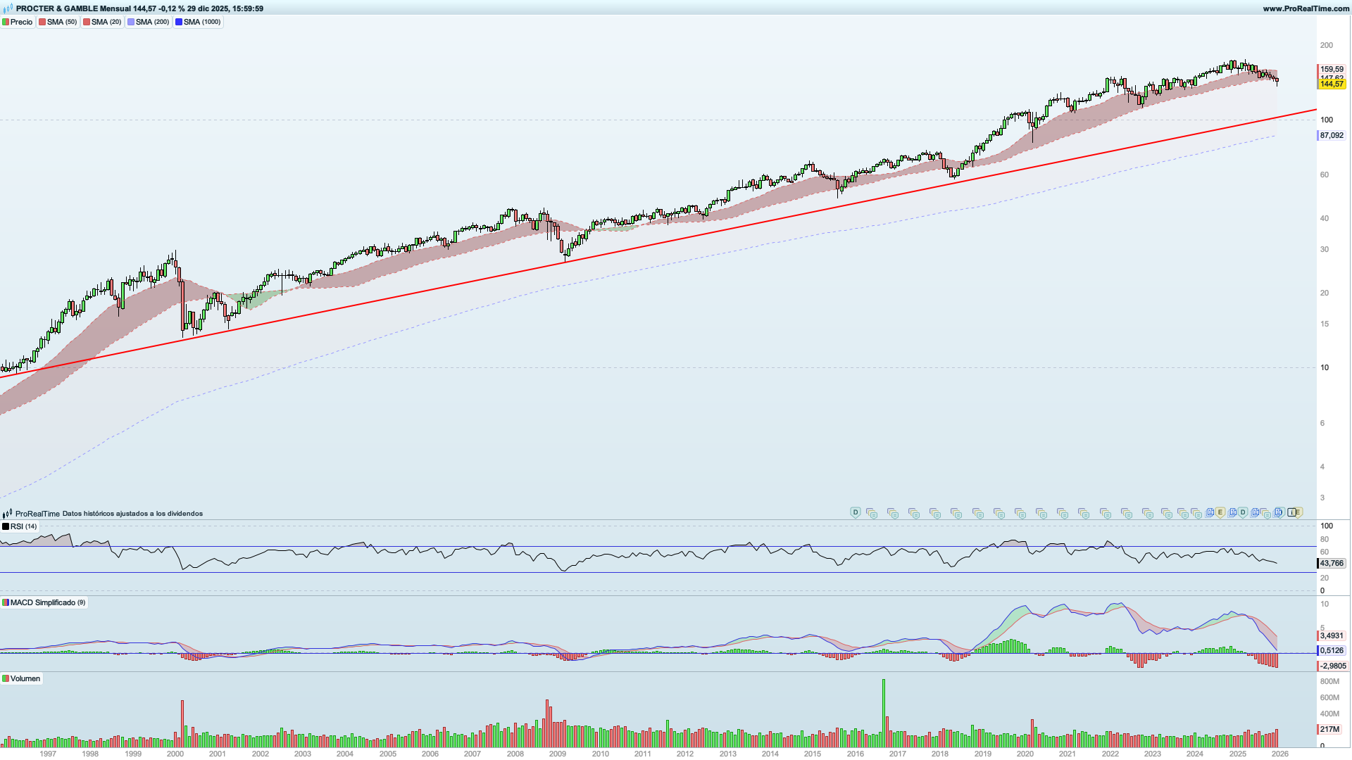 Yo soy uno de los que ha comprado a 140 (media posición). Mi análisis no ha sido para nada sesudo. Caída de ~25% desde máximos, RPD llegando al 3% y problemas en el sector (no intrínsecos de P&G). Por cada 10% que caiga, yo le seguiré metiendo bocados (25% de posición en 125, 110, 100, 90 …).