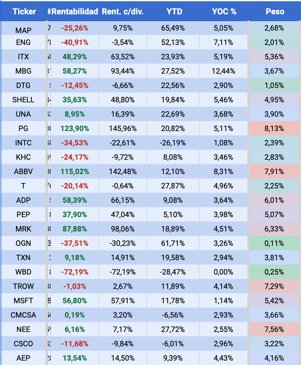 Durante 2023 se han cobrado un 9% (sería algo más si tenemos en cuenta que TROW y KHC entraron hoy) más de dividendos que el año pasado