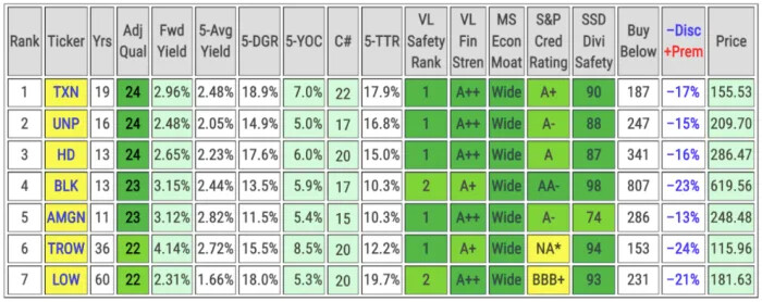 FV | FVQ | P / FV | P / FVQ | Proj Low TTL Return |
