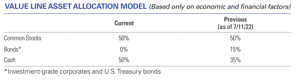 Por si sirve de algo, el asset allocation model del Value Line es el siguiente: