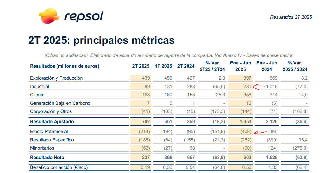 Mas de la mitad del beneficio del negocio depende de Industrial y Cliente que es todo el Downstream relacionado con el refino y venta de los derivados del petroleo en estaciones. Por lo que su dependencia del precio del petróleo es muy alta o casi total.