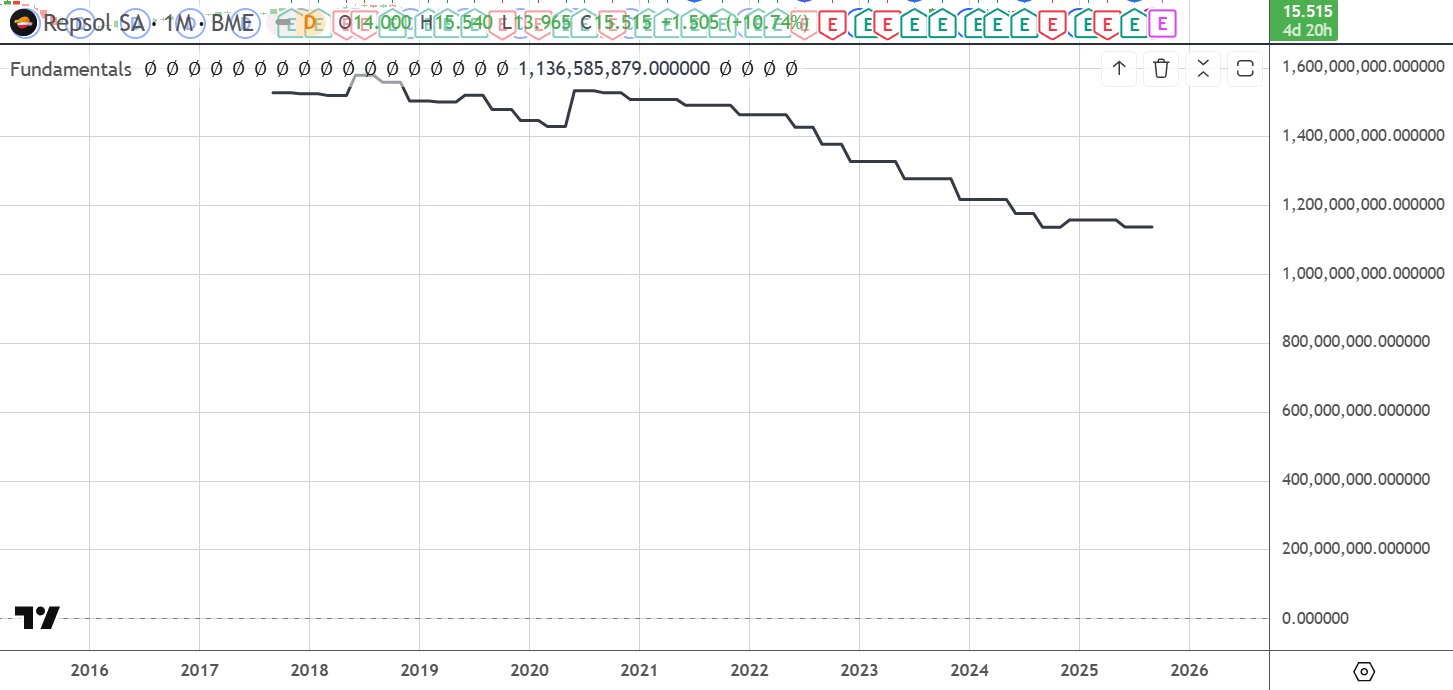 En España estamos un poco equivocados con Repsol, su producción upstream es 70% gas y 30% oil. Es mas gasista que petrolera. Además, en los últimso 4 años ha eliminado el 30% de las acciones.