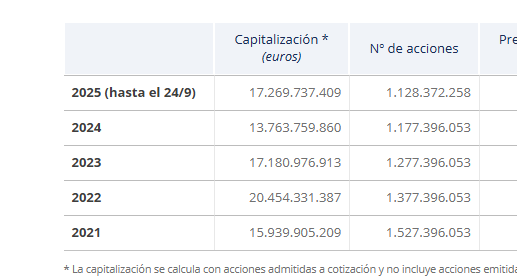 Por concretar la recompra es de 300 millones de euros desde septiembre a diciembre, con el incremento de precio de la acción no van a llegar a su estimación de comprar 21 millones de acciones.