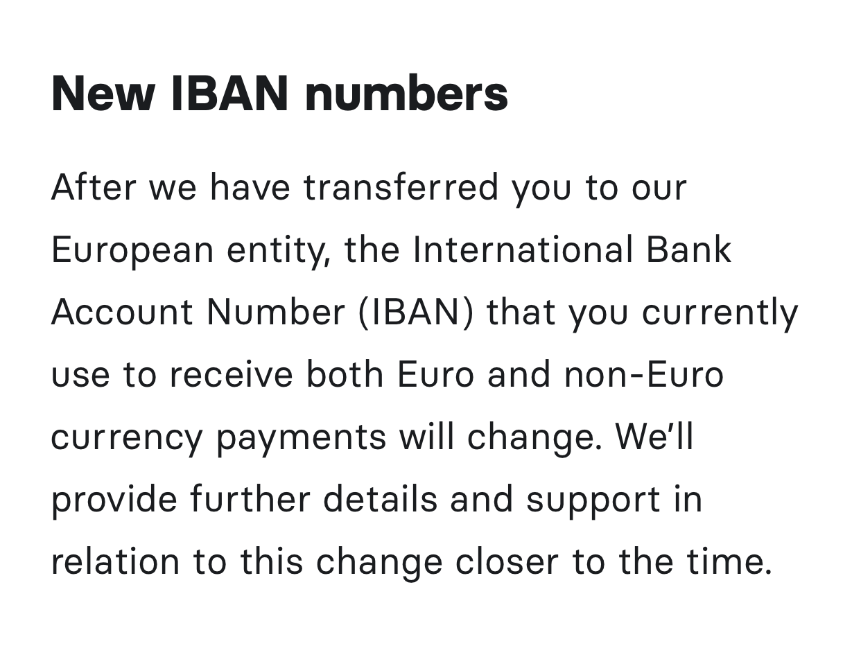 “Tu nuevo IBAN empieza por «LT» y sustituye al antiguo que empezaba por «GB». Para encontrar tu nuevo IBAN, selecciona el icono de tu perfil en la app Revolut pulsando en «Datos de la cuenta», y a continuación, selecciona una cuenta.”