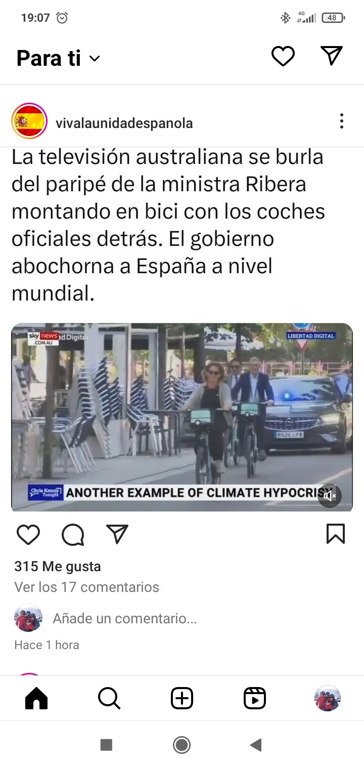 Como la gente que hoy critica que la ministra haya llegado a la Cumbre del Clima haciendo los últimos 20 metros en bicicleta (con varios coches de gasolina haciendo de escolta entrando en la zona de bajas emisiones aprobada por el anterior alcalde socialista) pero habiendo hecho el viaje previo en Falcon para ahorrar 5 minutos en un viaje que se puede hacer en AVE y contaminando como infinitos coches diésel de esos que intoxican a foreros random.