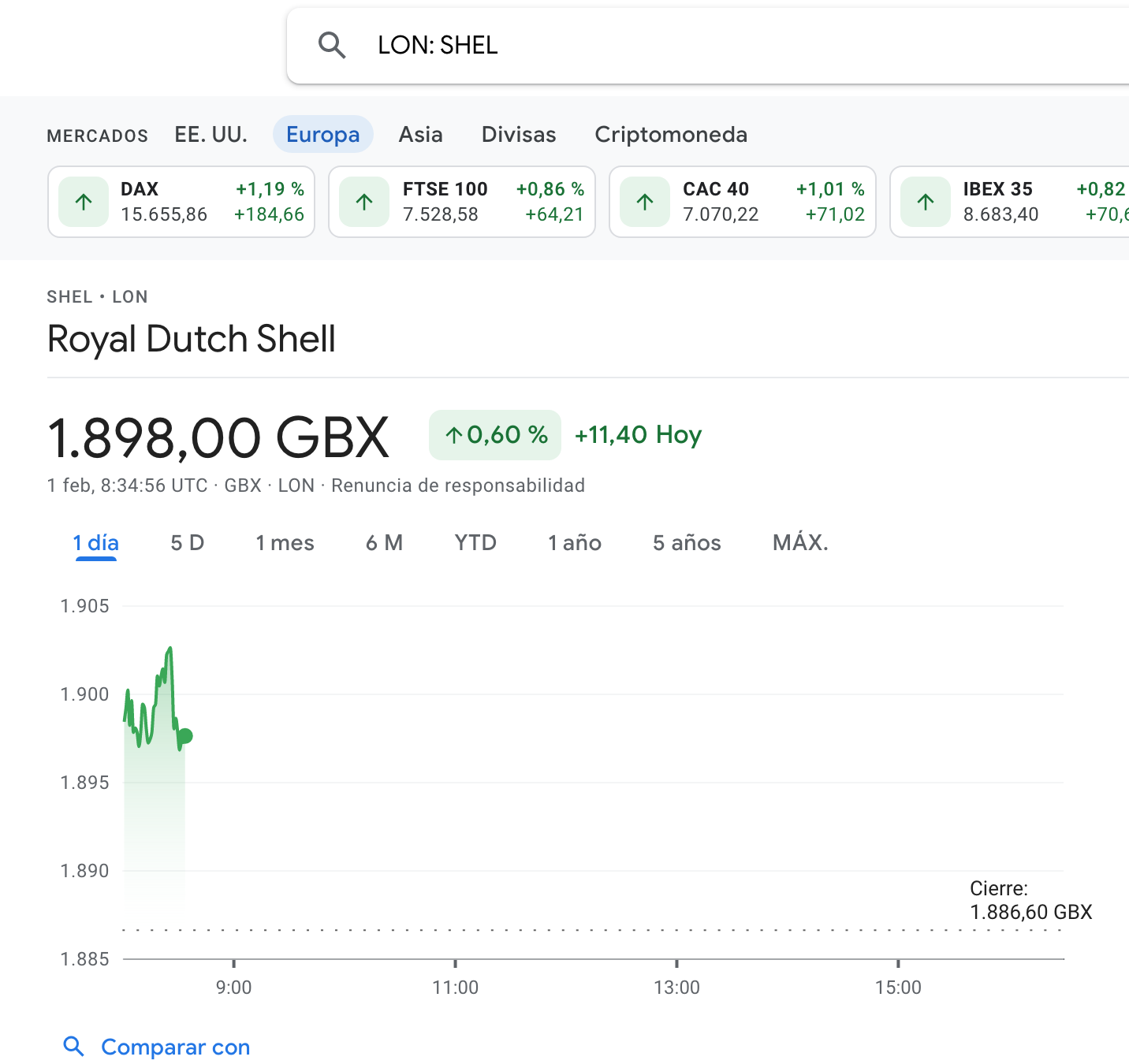 Solo veo AMS:SHELL en Google Finance