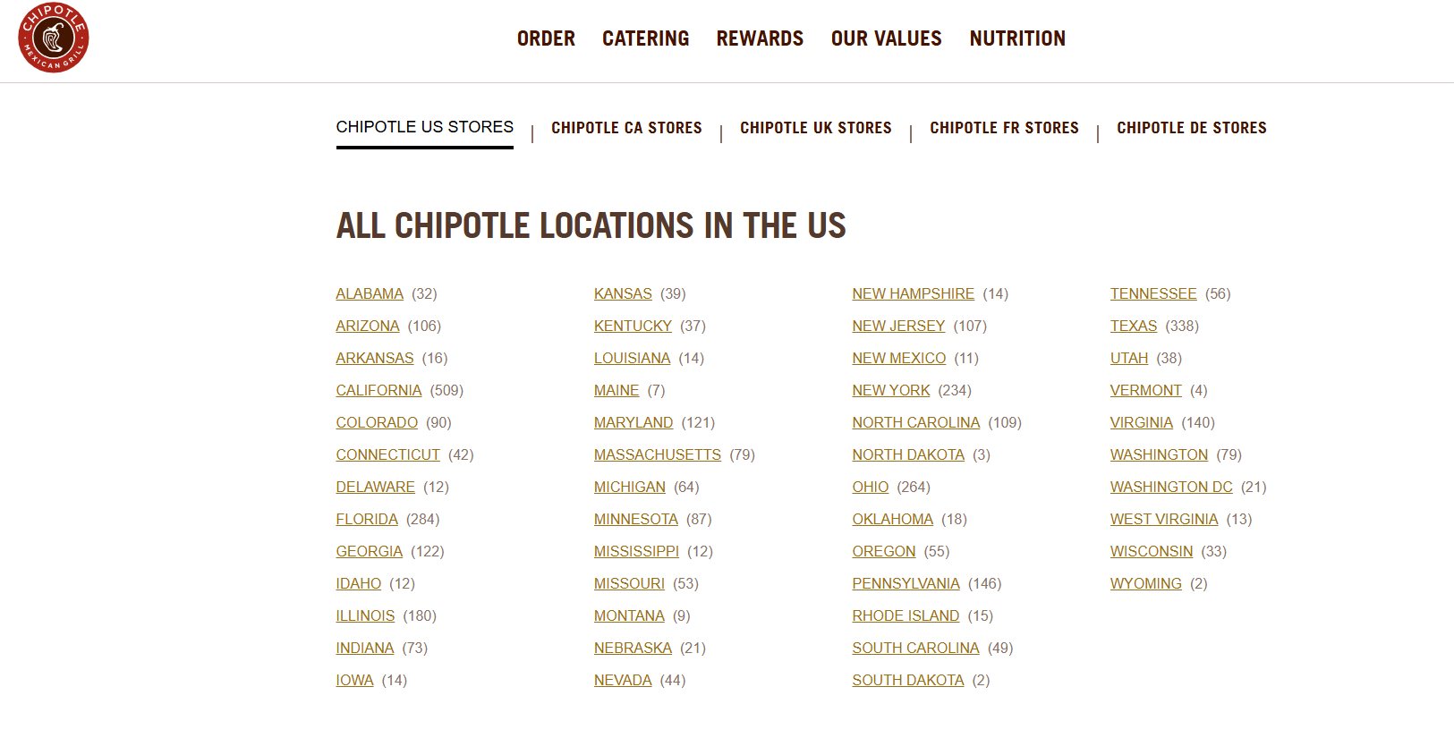 Ejemplo. Todos los Chipotles en USA, 2 en el estado de Wyoming por ejemplo