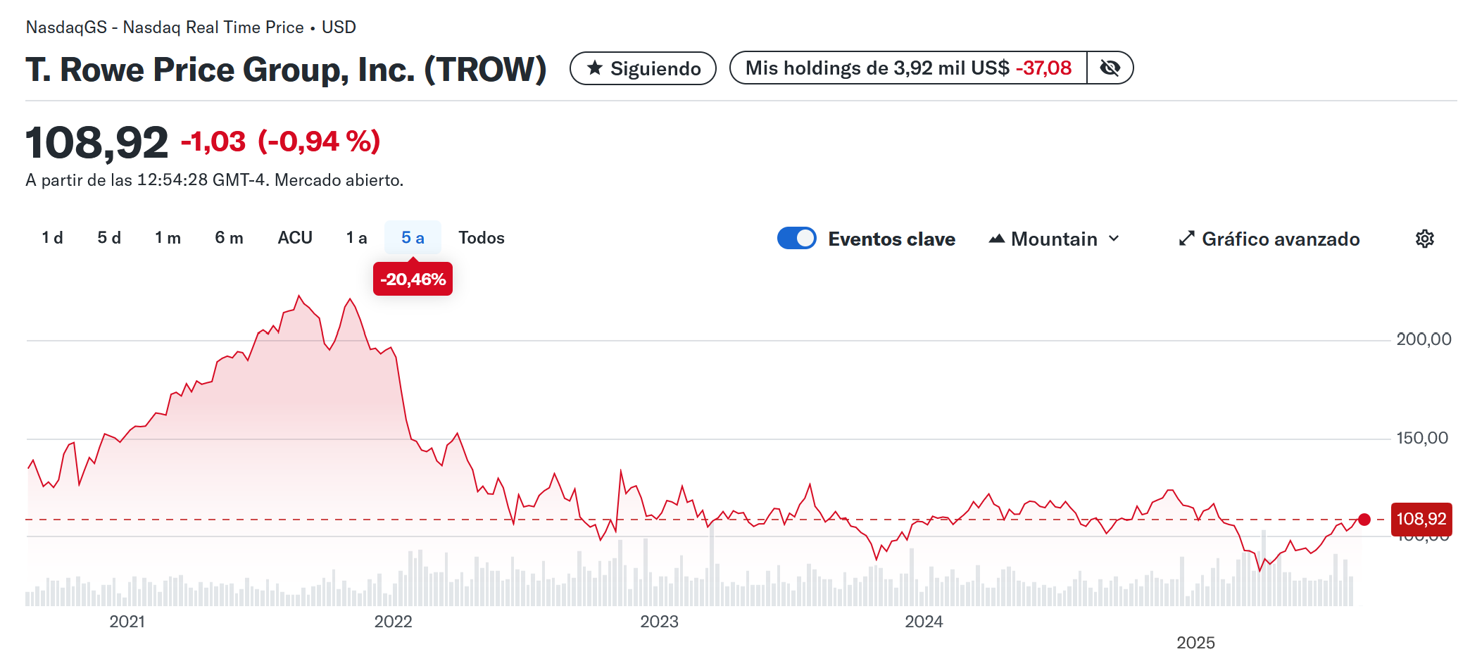 Pero vamos que aún con todo TROW está en -4% en lo que va de año y en -20% en los últimos 5 años. Que a tí te esté yendo bien no es para alabar el penoso desempeño de la empresa.