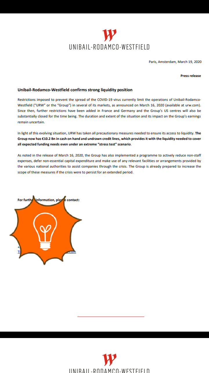 Zara, H&M, McDonalds, los cines…tienen la posibilidad de finiquitar sus contratos con Unibail pues firman los contratos mes a mes (dudo que sea así).