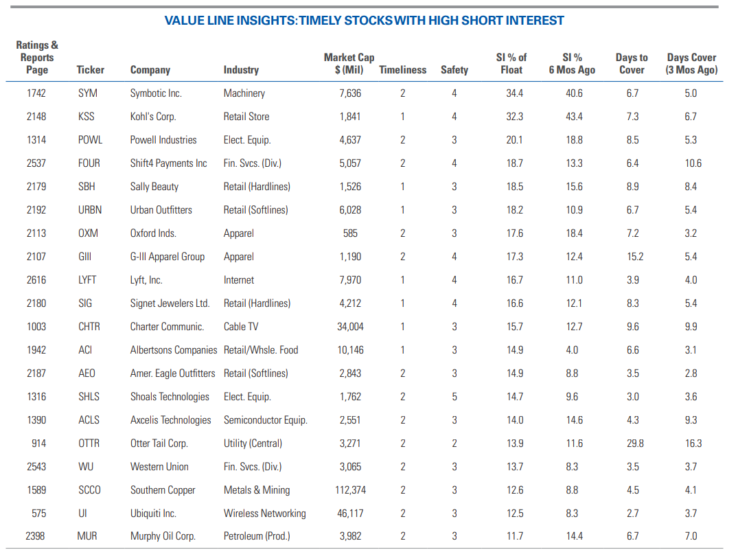 We have screened for the stocks in our Survey with the highest short interest and favorable Timeliness ranks. While this approach may not align with the goals of long-term or conservative investors, the current risk-on environment provides fertile ground for further short-squeeze opportunities.