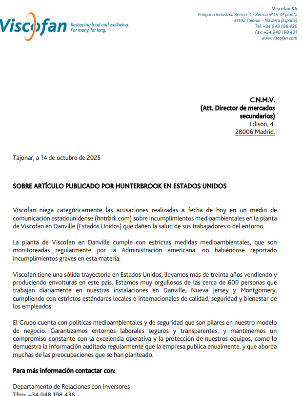 El supuesto problema no viene de que la planta esté teniendo problemas de negocio o estructurales, si no de la posibilidad de que a través de la misma Viscofan se pueda ver envuelta en un tema de sanciones y/o demandas sociales, a las que por cierto suelen ser bastante aficionados por allí en cuanto huelen algo de “sangre” y los despachos de litigantes ven la oportunidad de negocio.